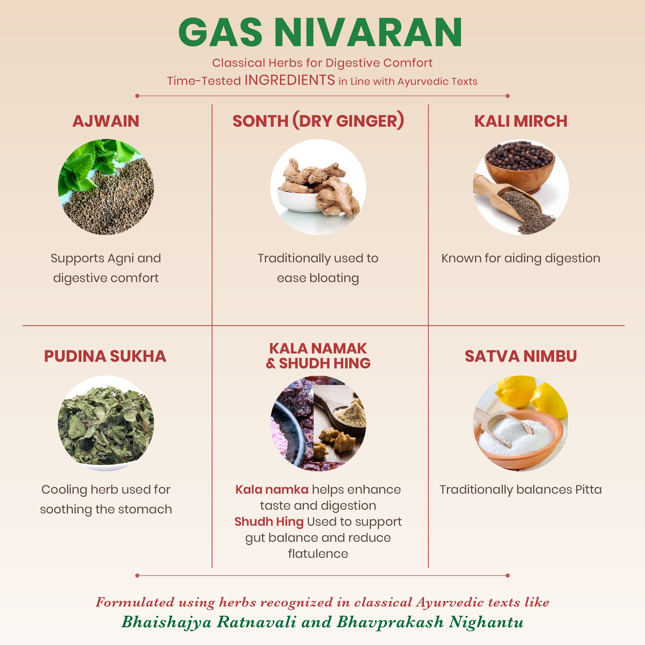 Busy schedules, irregular meals, travel, and lifestyle stress can influence digestive comfort and appetite, impacting overall vitality. Gas Nivaran is a thoughtfully crafted Ayurvedic formulation designed to support digestive balance, promote healthy Agni (digestive fire), and maintain post-meal comfort as part of a balanced lifestyle. Developed by Dhanwantri Pharmaceuticals since 1921, this proprietary blend combines classical Ayurvedic wisdom with responsible modern manufacturing to deliver dependable daily digestive support—focusing on internal harmony rather than temporary masking.