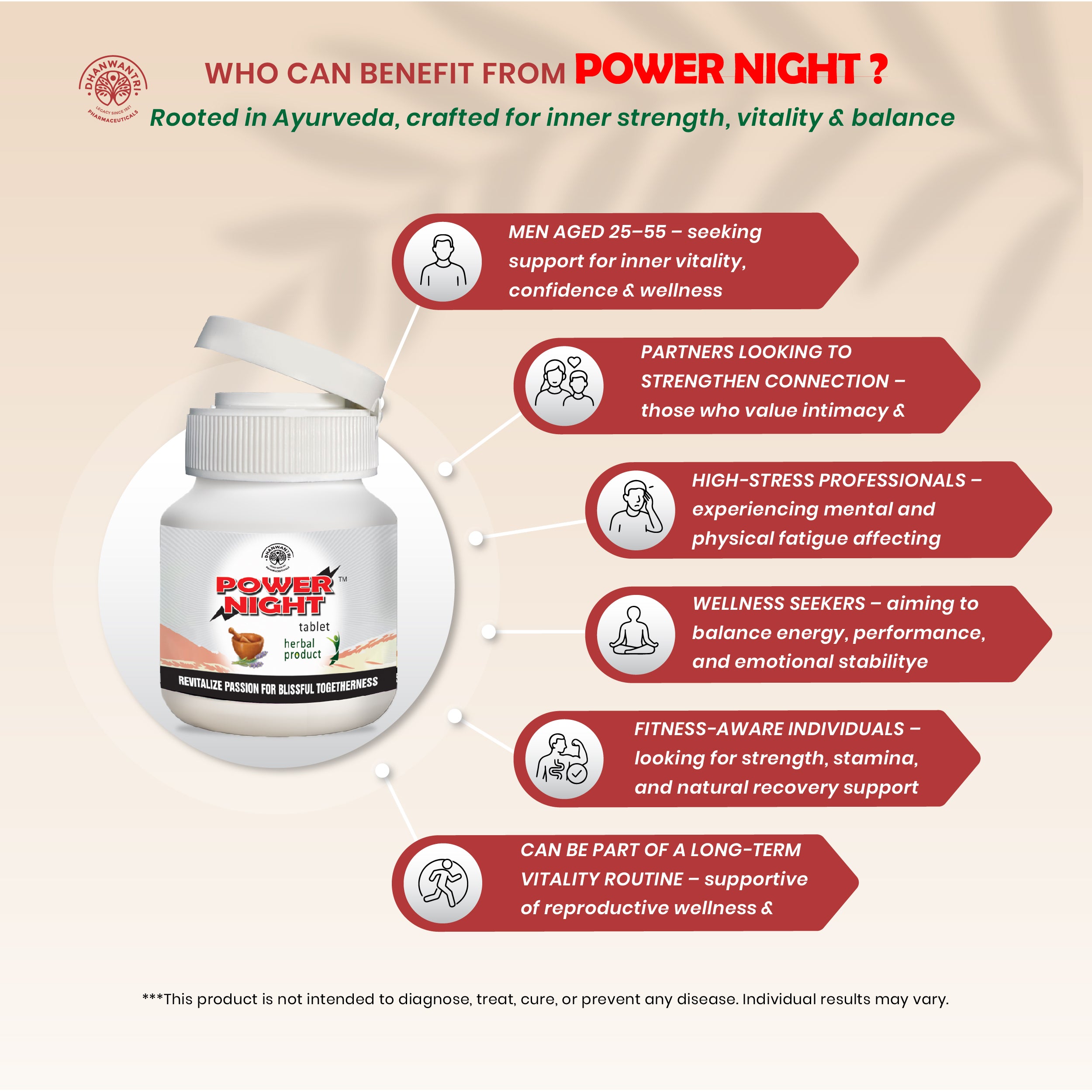 🌿 Power Night Tablets are not just about instant energy—they are about restoring balance, building strength, and empowering men naturally with Ayurveda.