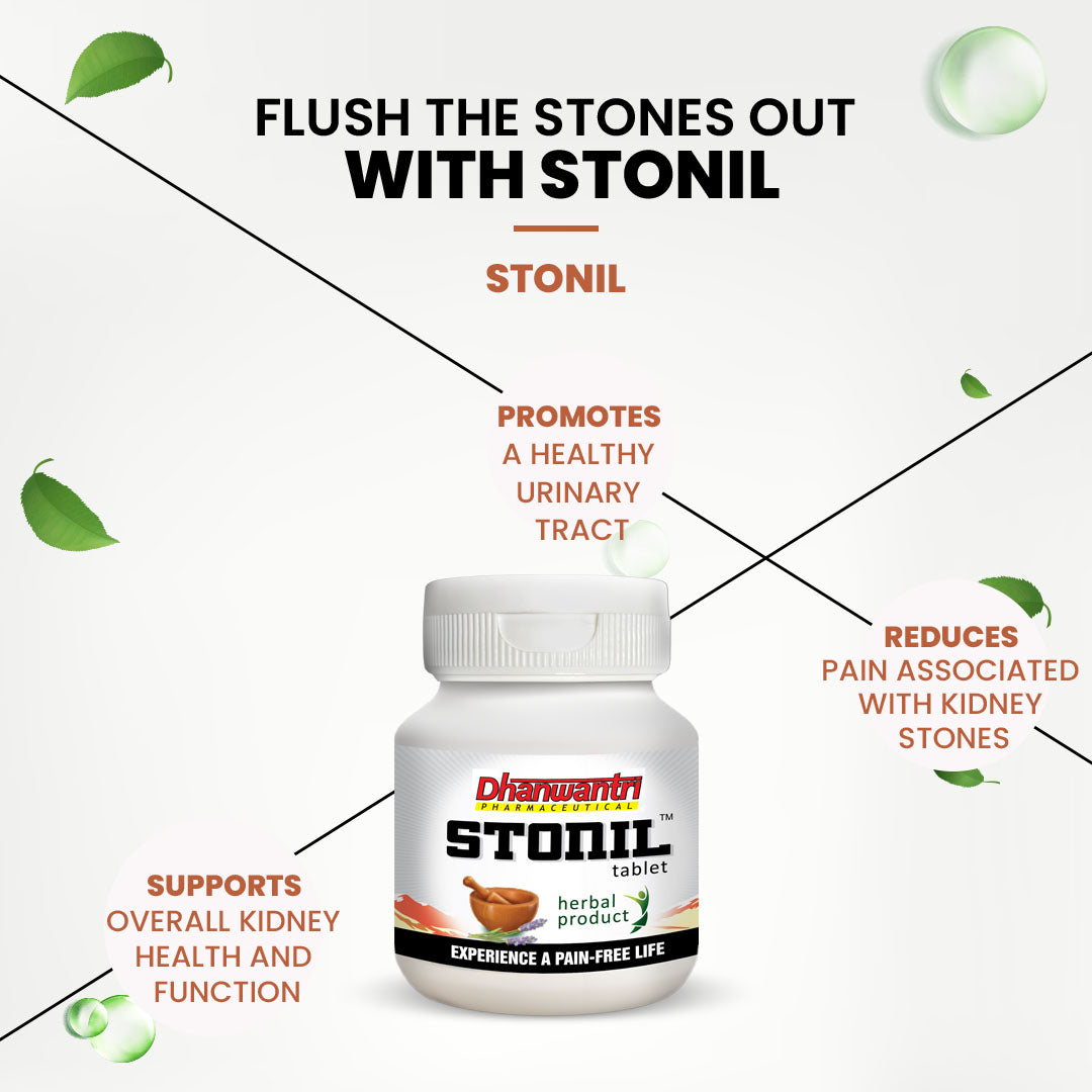 Tridoshic Ayurvedic Support for Kidney Stones, Urinary Health, Detox & Stone-Prone Tendency & Healthy Kidney Function and Improved Bladder Tone | Herbal Blend with Pashanbhed, Gokhru & Punarnava | 100+ Years of Ayurvedic Legacy. - Stonil is a proprietary Ayurvedic formulation crafted with herbs like Pashanbhed, Gokhru, Punarnava, Varuna, and Kulthi Dal. It supports urinary comfort, natural detoxification, and helps maintain kidney and bladder balance. Whether due to lifestyle stress, dehydration, or stone-prone tendencies, Stonil provides gentle yet effective support for urinary wellness. Trusted for over 100 years, it reflects Dhanwantri Pharmaceuticals’ legacy of authentic Ayurvedic innovation.