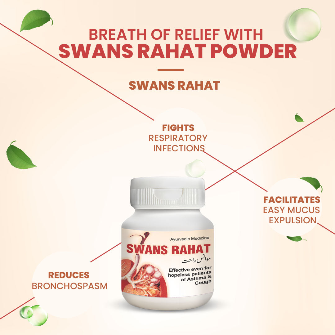 A: No. Swans Rahat is a wellness supplement supporting general respiratory balance, not a treatment for chronic conditions.