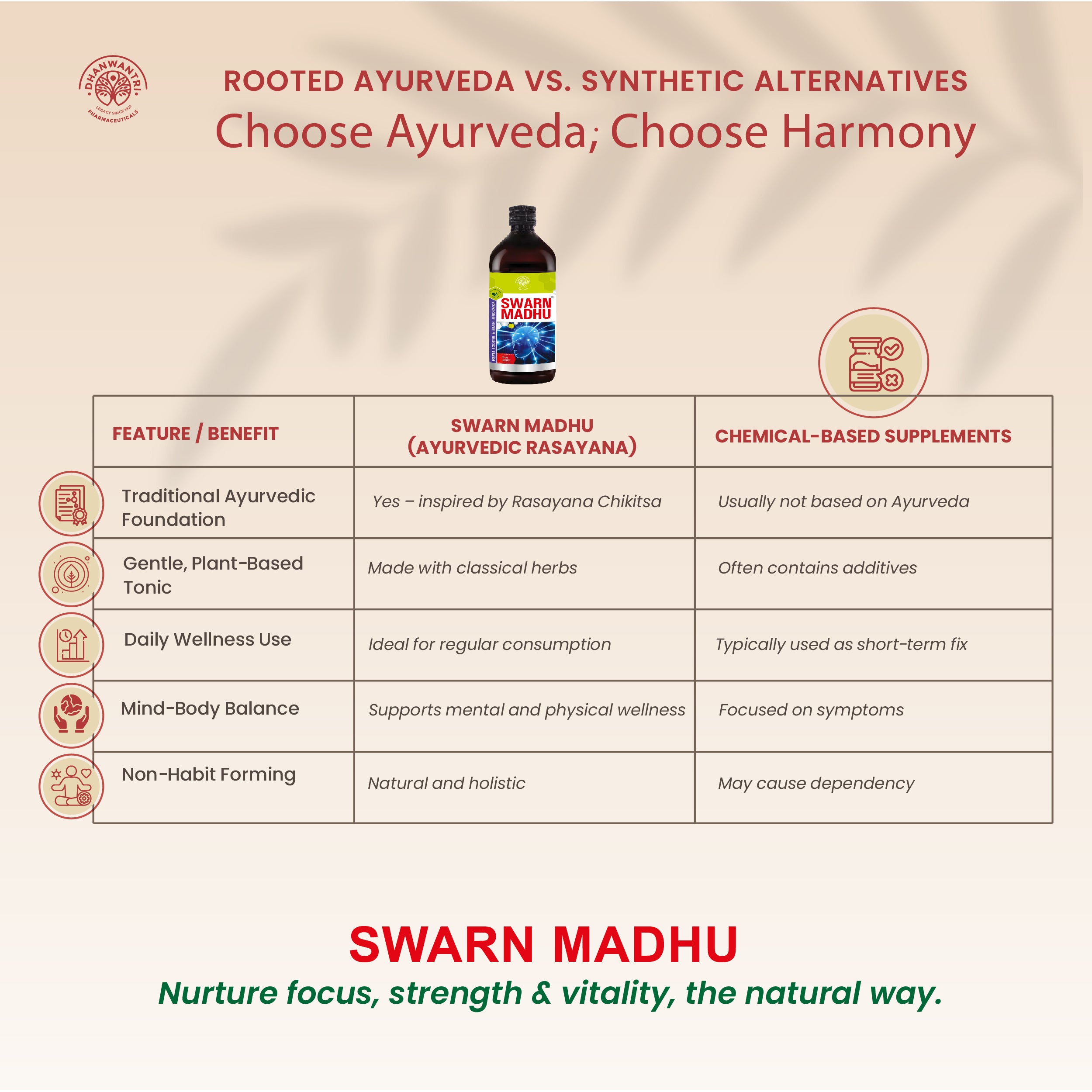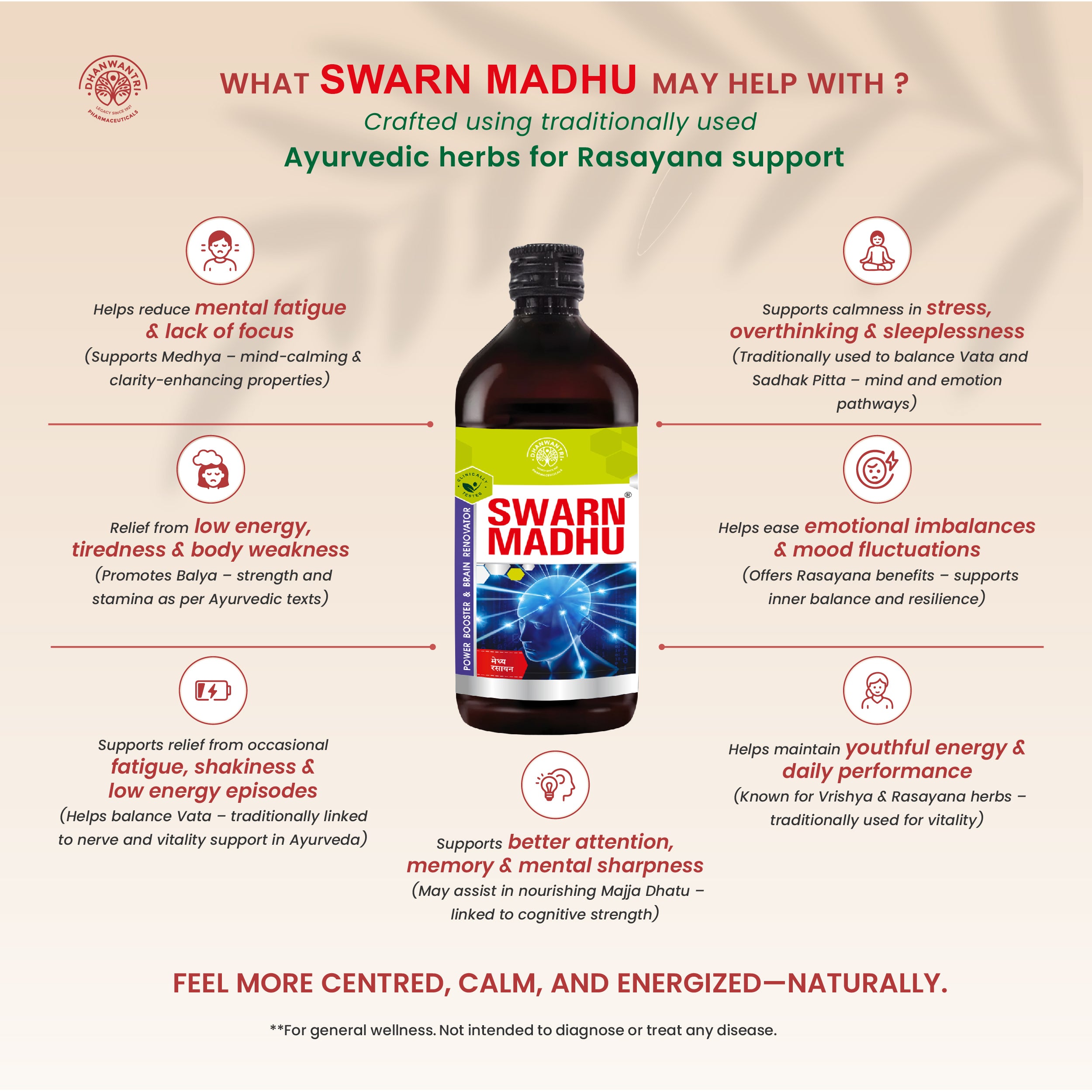 Our Swarn Madhu is a mix of syrup, made with natural ingredients and Ayurvedic formulations.